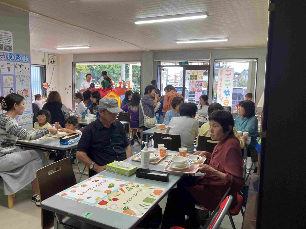 子どもたちは、ご飯が食べ終わった後も、隣のキッズコーナーで遊んだり、小さな子どもの世話をしたり、大人とお喋りしたりとワイワイガヤガヤ、賑やかなランチタイムとなりました。子どもたちが遊び回るなかでの食事は少々落ち着かないかもしれませんが、いろんな世代の人たちと出会えるこの場所は、子どもたちにとっても大切な学びの場となっているはずです。